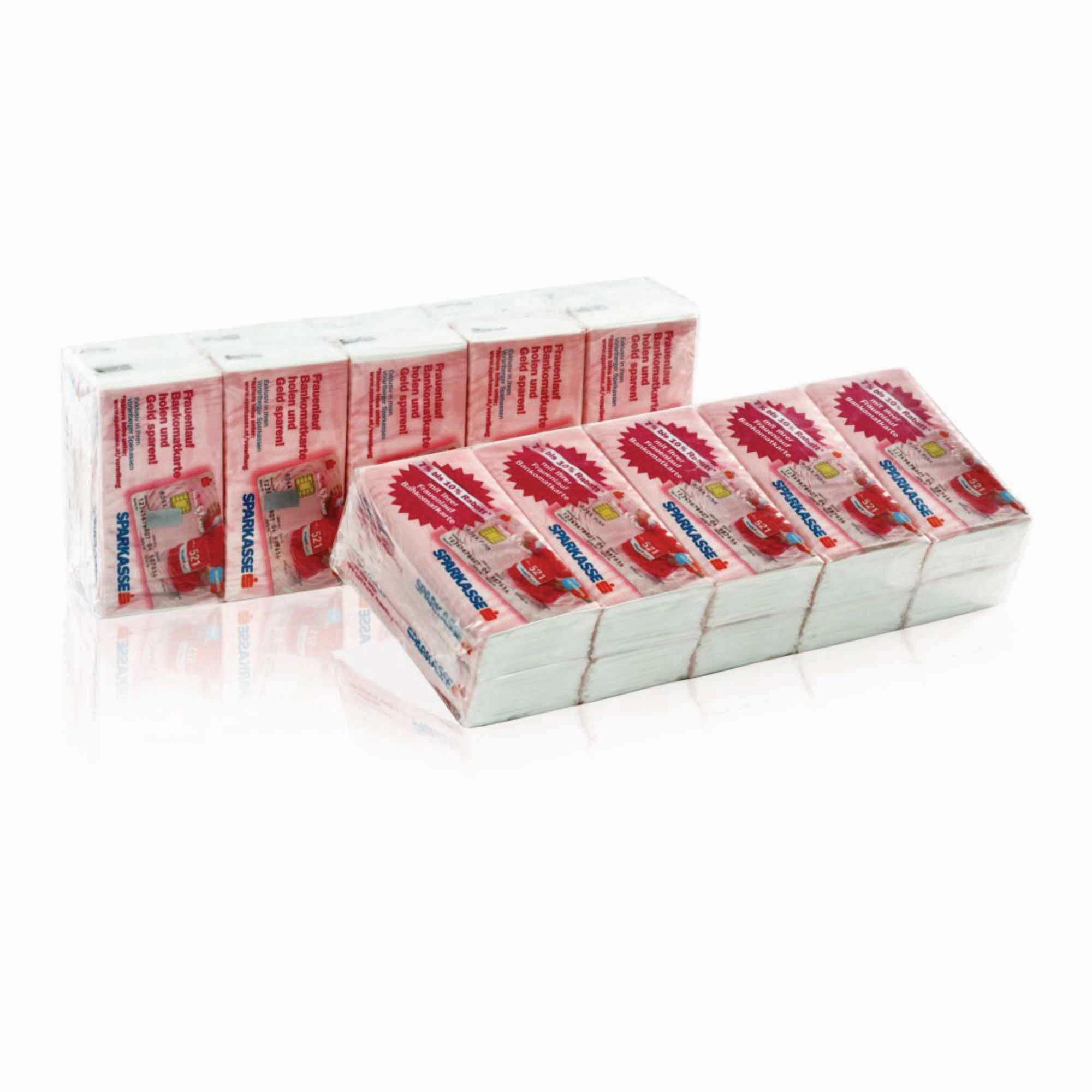 Egal ob im Herbst und Winter bei einer Erkältung, im Frühjahr bei Heuschnupfen oder im Sommer bei Temperaturen um 30°C: Eine Packung Nastücher hat man immer greifbar. Als Veredelung lässt sich ein Digital-Rundumdruck realisieren. Schon ab 1'000 Stk. bestellbar.