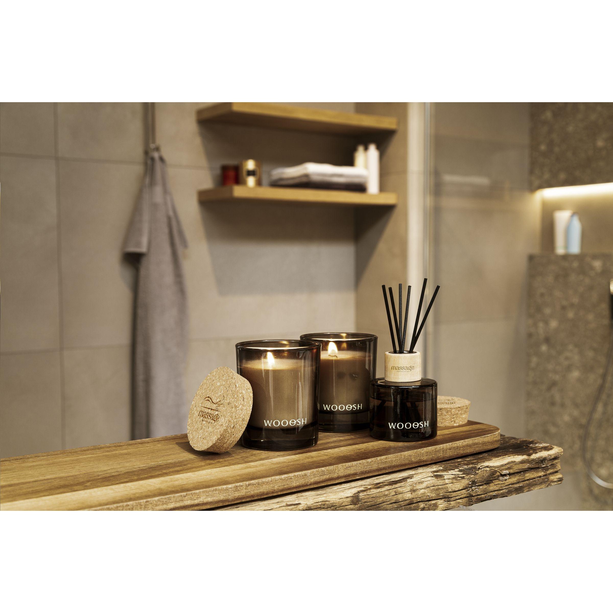 Dekorative Wooosh-Duftkerze, gegossen in einem wunderschönen polierten Glas mit Korkdeckel. Diese Kerze verströmt sofort einen angenehmen Duft und schafft ein entspanntes Ambiente. Die Duftkerze wird aus Wachs mit einem Anteil von 5% Sojawachs und einem Zusatz von 5 % Duftöl hergestellt. Sobald Sie die Kerze anzünden, verspüren Sie einen Hauch von Harmonie und Natur. Dieses aromatische Dufterlebnis wirkt erfrischend und fördert gleichzeitig Ruhe und Entspannung – bei Yoga- und Meditationsübungen, im Wellnessbereich oder im Bad. Diese luxuriöse Duftkerze passt in jede Umgebung und hat eine Brenndauer von 32 Stunden. Das perfekte Geschenk für jede Gelegenheit. Wenn Sie die Kerze zum ersten Mal anzünden, lassen Sie die oberste Wachsschicht vollständig schmelzen. Dies gewährleistet ein gleichmäßiges Abbrennen und das ultimative Dufterlebnis. Das perfekte Geschenk für jede Gelegenheit. Pro Stück in einer luxuriösen Wooosh-Geschenkbox.